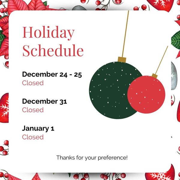 We’re closed on major holidays!